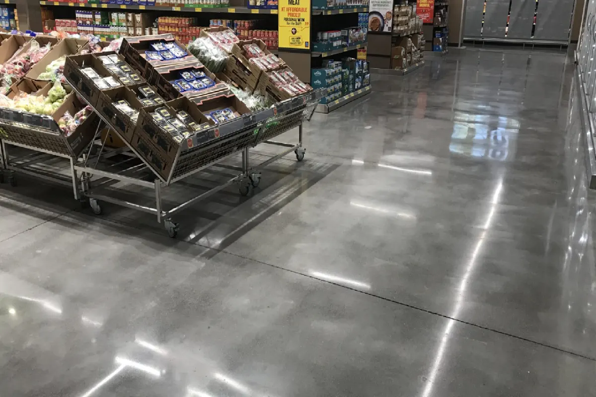metallic gray marbled epoxy floor in a retail store aisle